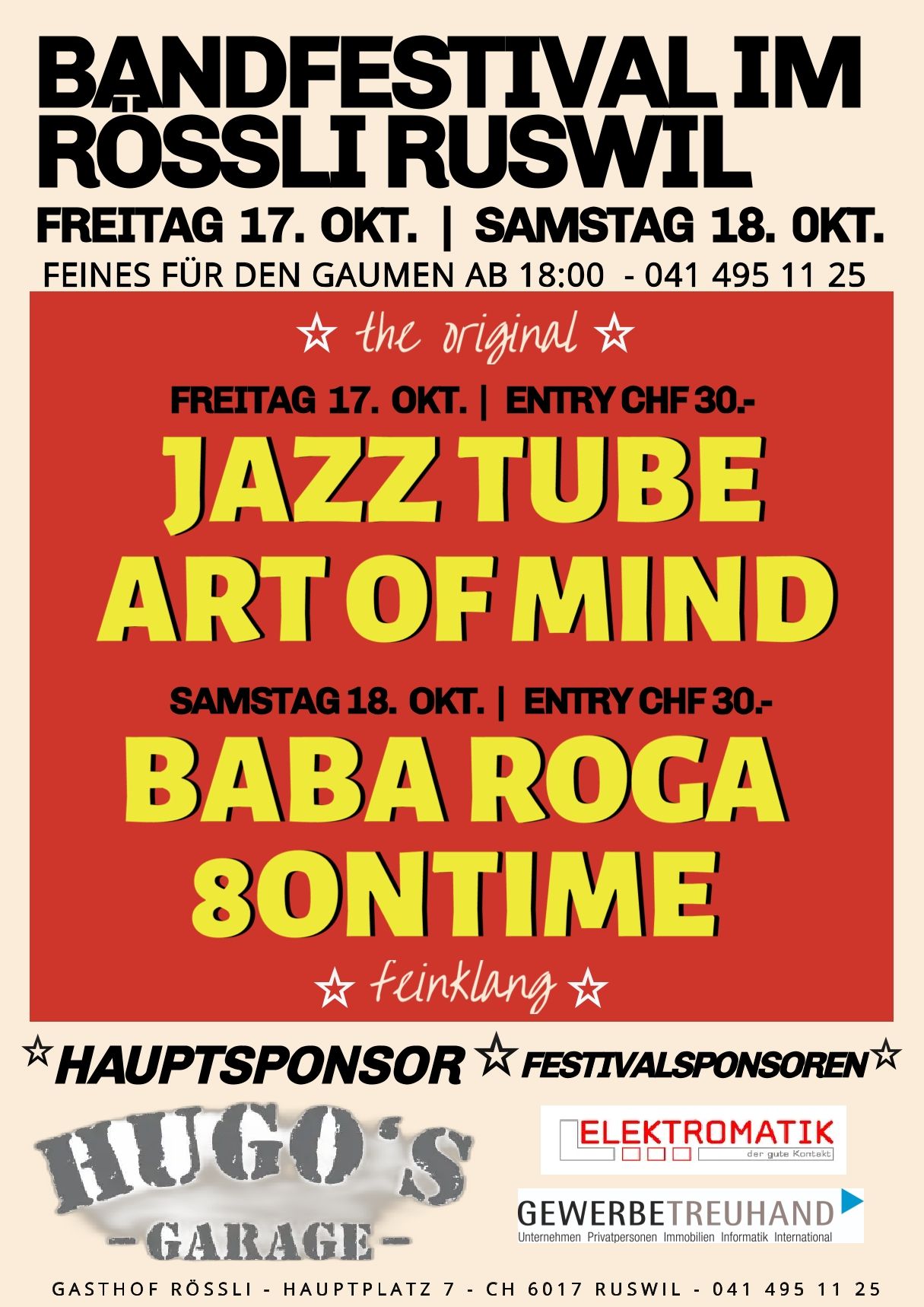 Am 17. Oktober sorgen Jazz Tube und Art of Mind für mitreißende Klänge auf unserer Bühne. Am 18. Oktober folgen Baba Roga und die groovige Band 8ontime